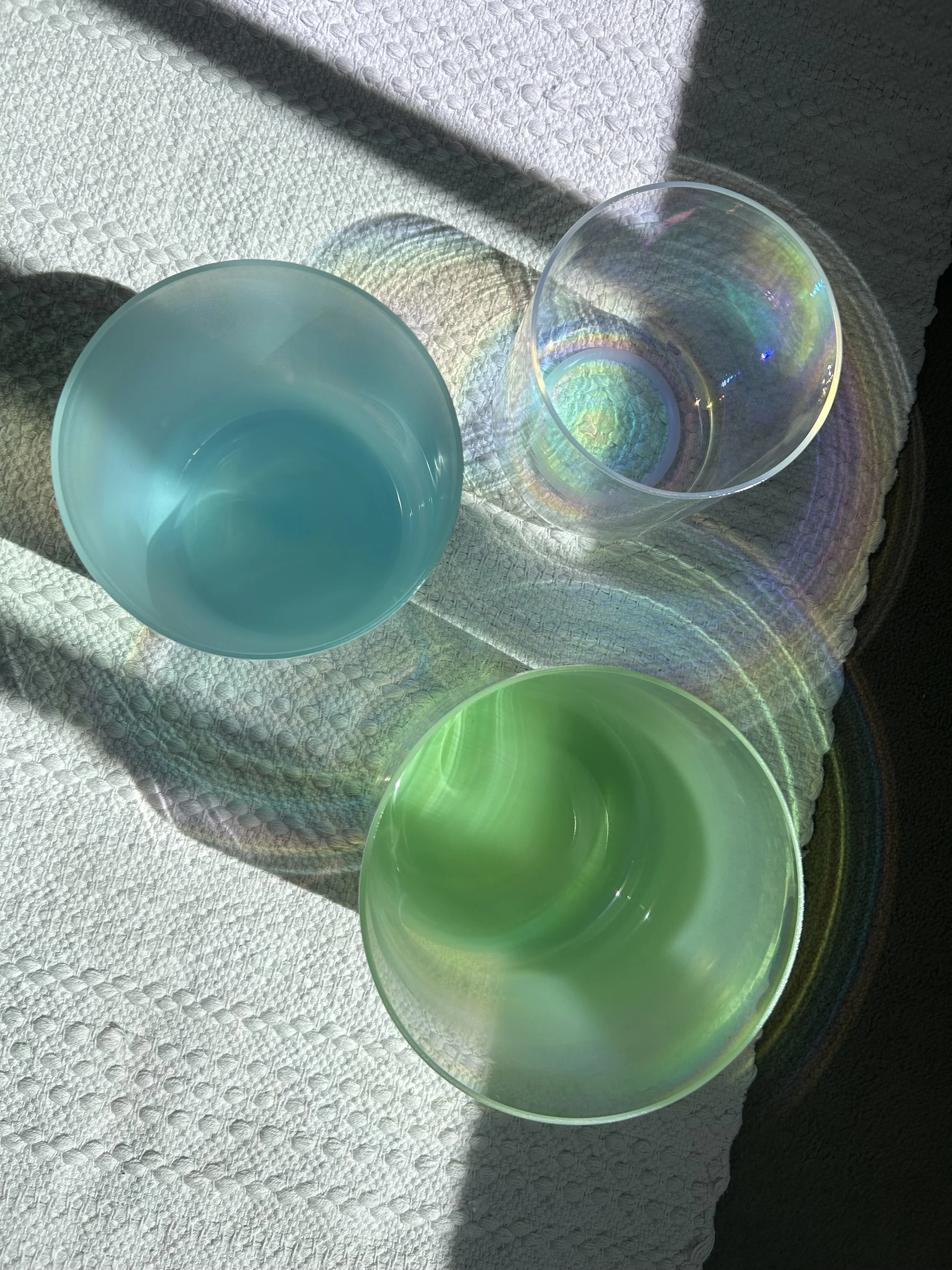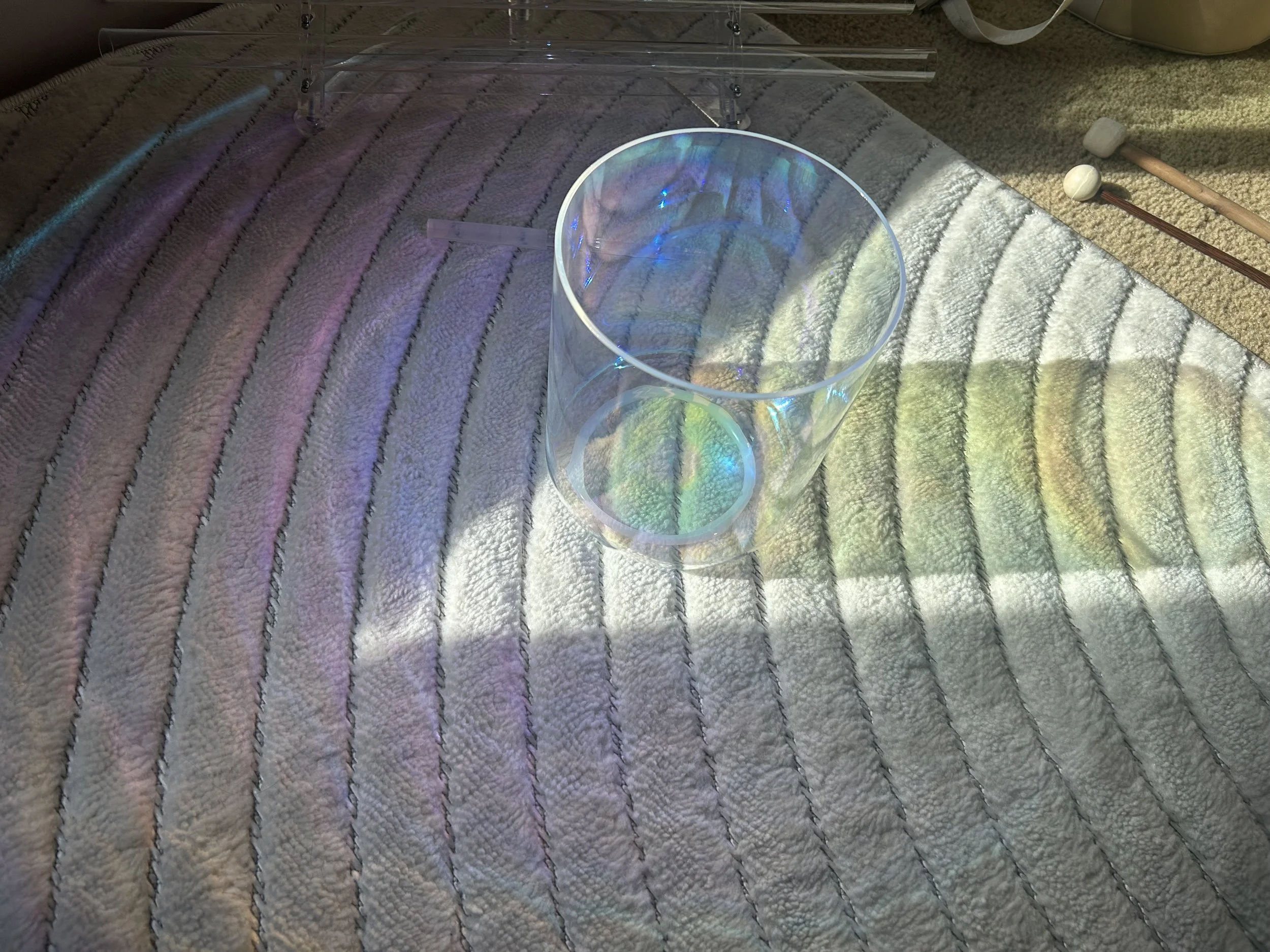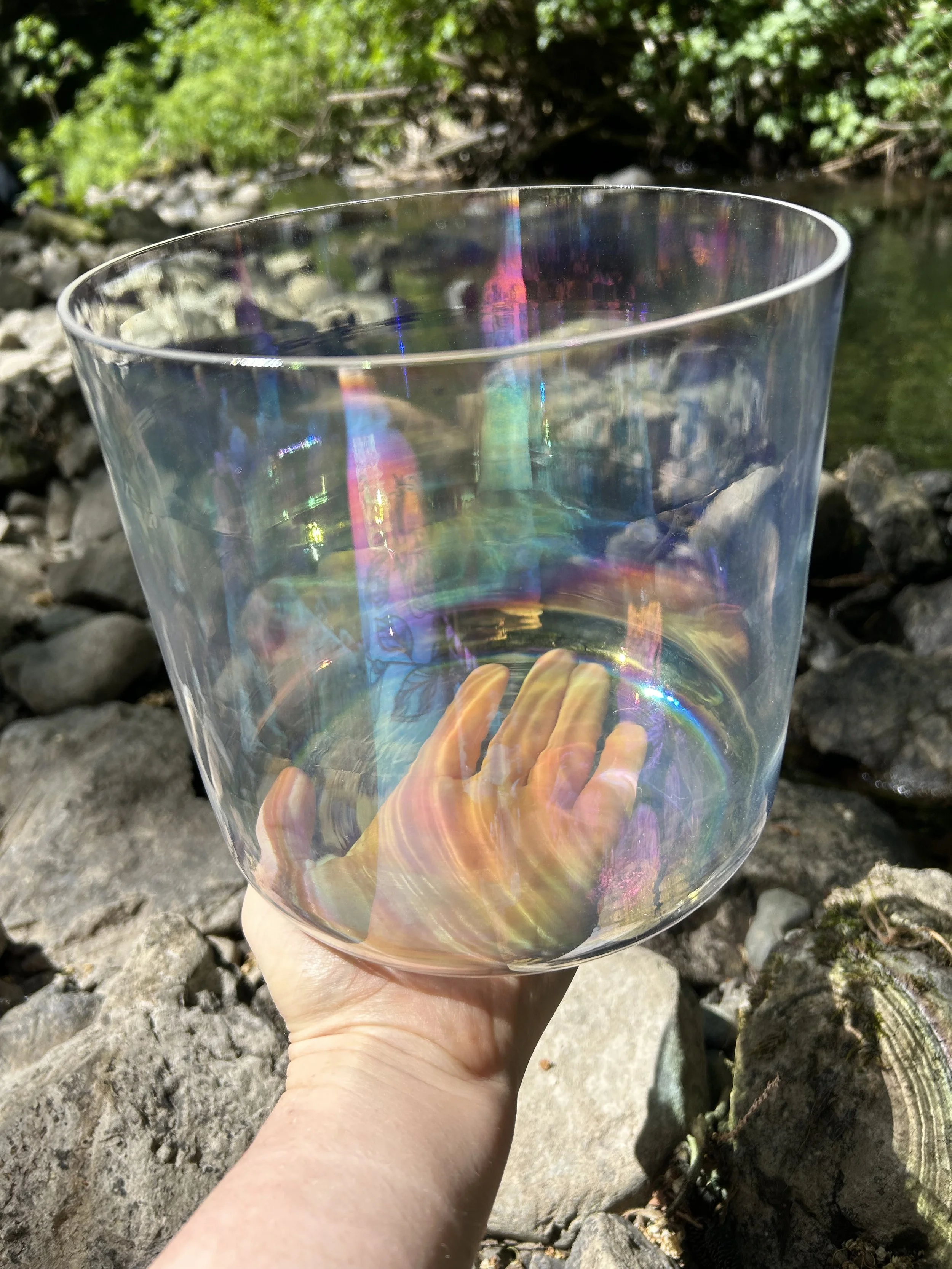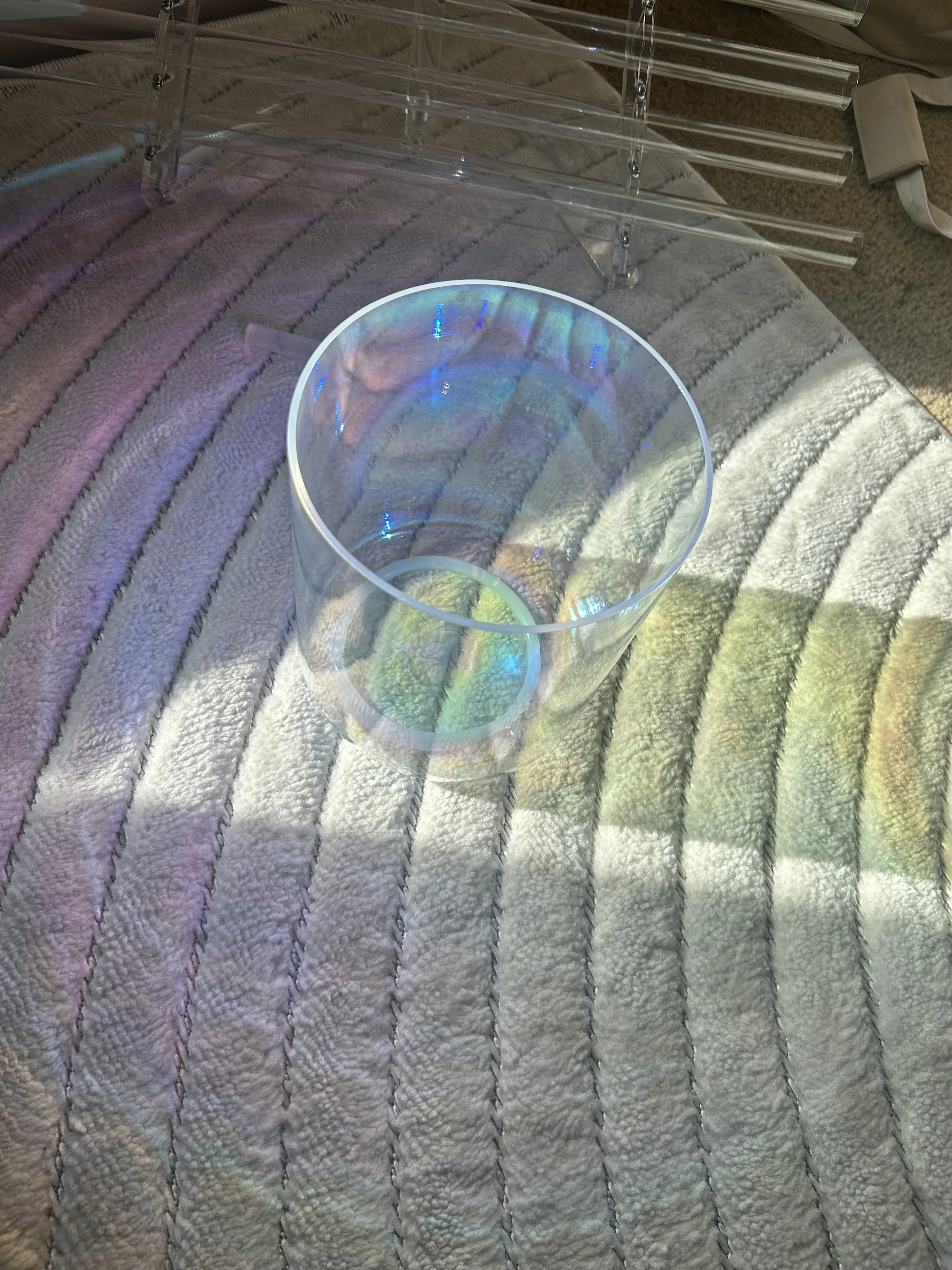 Introducing the Golden Glow Bowl – a unique crystal singing bowl that radiates warmth and serenity. This exquisite bowl is crafted in a beautiful soft amber hue, embodying a gentle, inviting energy that enhances any sound meditation practice.